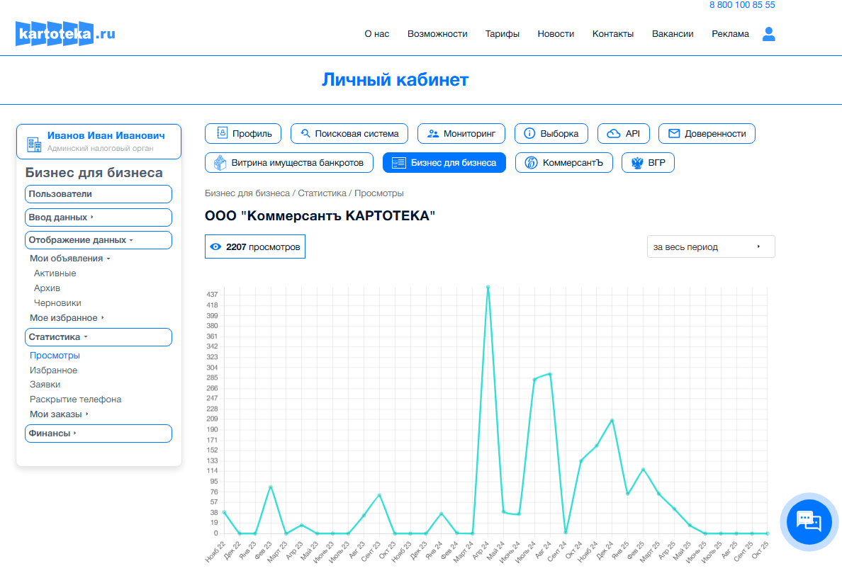 После размещения, объявление появится в результатах поиска «Маркетплейса» и на странице «Партнерам» в карточке компании. Размещение объявлений в нескольких местах позволяет увеличить заметность объявления и максимально охватить широкую аудиторию ресурса kartoteka.ru, пополняемую с помощью разных каналов.