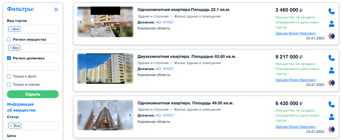 Вертикальный фильтр, в свою очередь, предоставляет возможность детализированной настройки поиска по широкому спектру критериев и характеристик, таких как регион имущества, регион торгов, тип торгов, дата проведения торгов, статус лотов и другие релевантные параметры.
